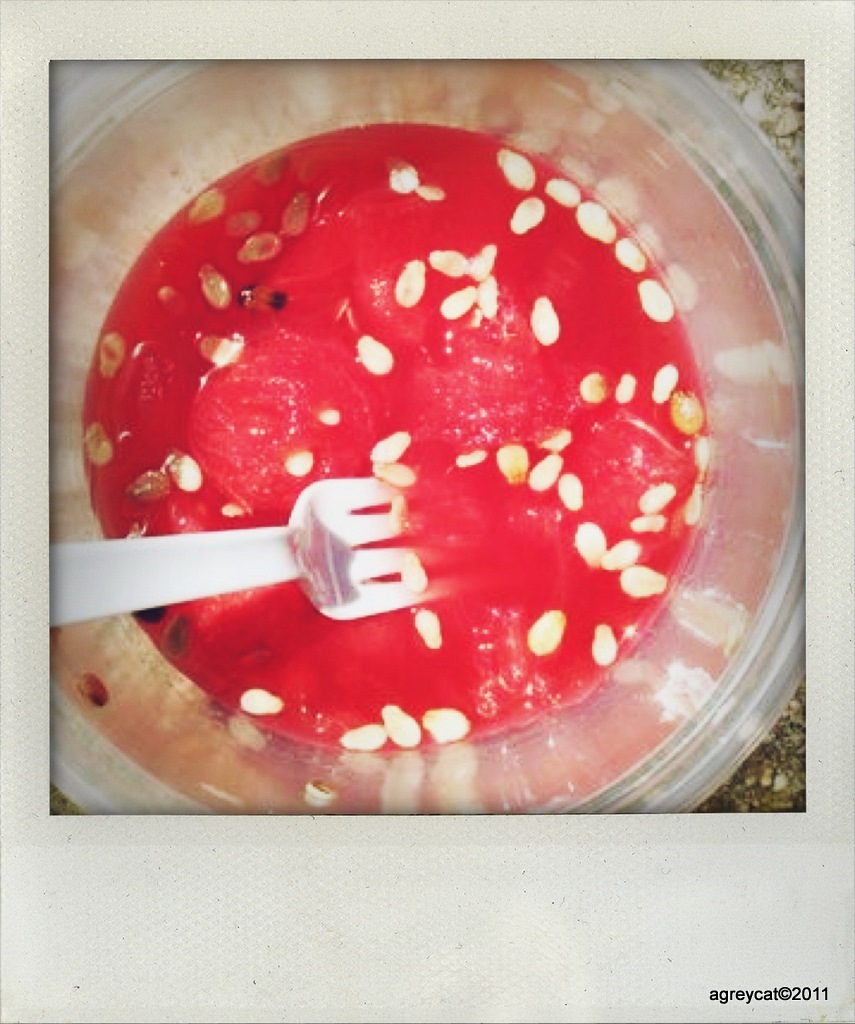 August 11, 2011 aGreycat Supposedly Seedless Umm…I know there are always a few seeds in a seedless watermelon (usually a few little white ones) But Damn! I have never had this many seeds even in a regular watermelon. Supposedly Seedless Watermelon Share this: Click to email a link to a friend (Opens in new window) Email More Click to share on Facebook (Opens in new window) Facebook Click to share on X (Opens in new window) X Like Loading... Related